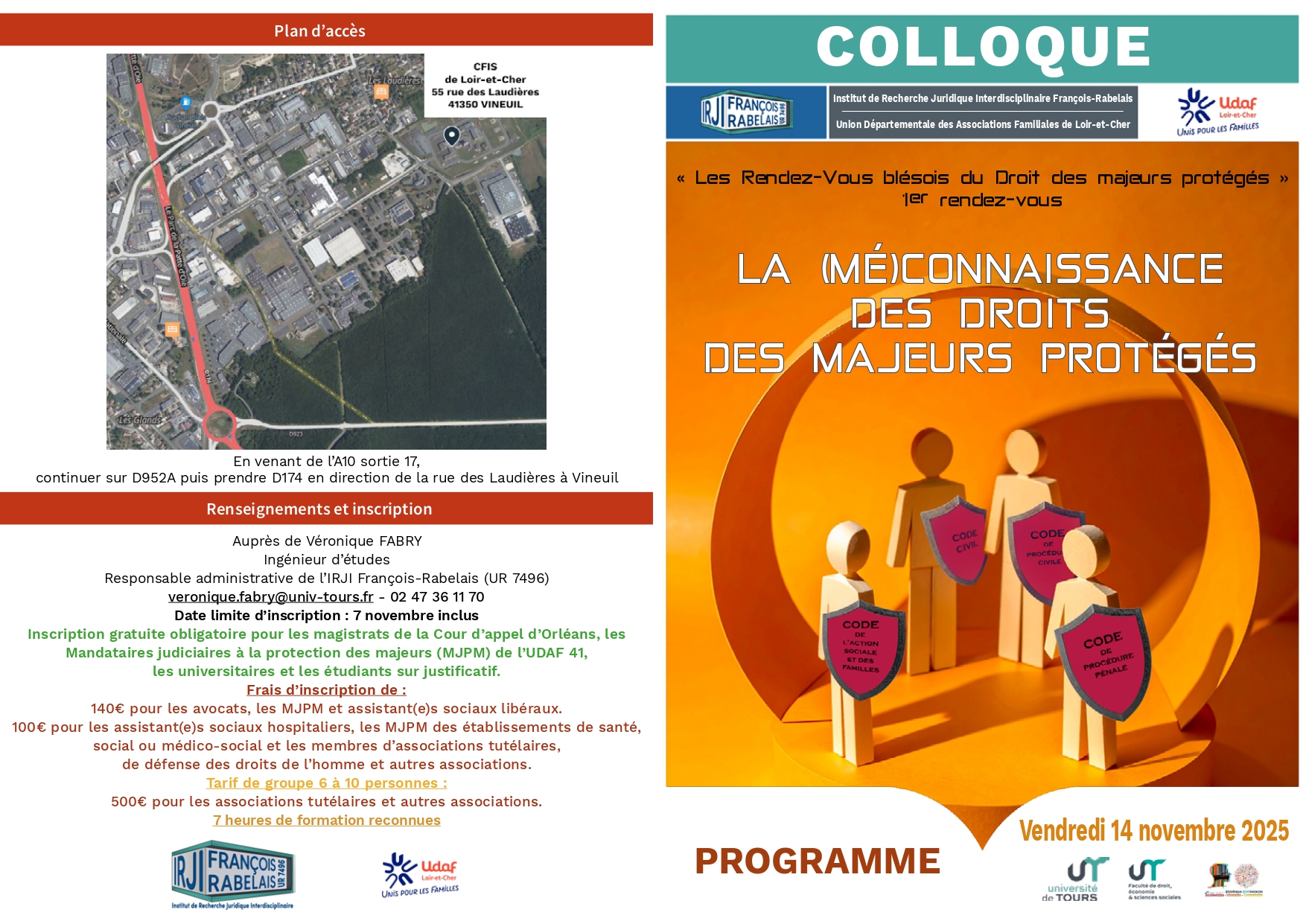 L’Institut de Recherche Juridique Interdisciplinaire François-Rabelais (IRJI – Université de Tours) et l’Union Départementale des Associations Familiales de Loir-et-Cher (UDAF 41) organisent le 1er rendez-vous des “Rendez-vous blésois du Droit des majeurs protégés”, autour d’un thème essentiel : la (mé)connaissance des droits des majeurs protégés.